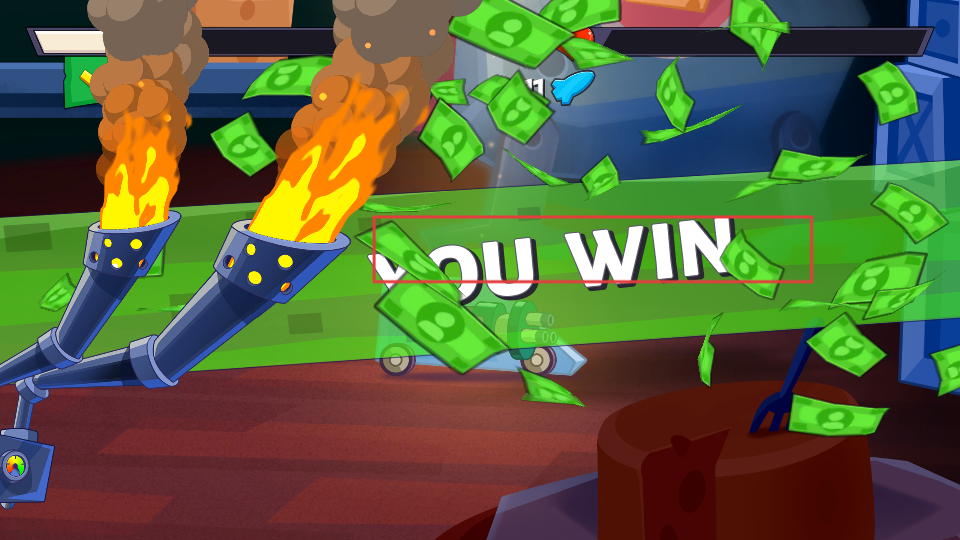 4、当成功将敌方汽车的生命值削减至0,看到YOU WIN提示时,即获得当前战斗的胜利,然后可以选择继续挑战其他关卡。