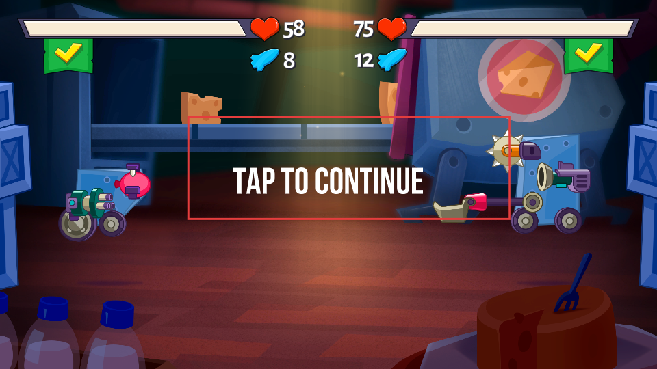 1、玩家下载游戏之后然后点击进入,在游戏界面中点击TAP TO CONTINUE按钮,进入汽车大战的对战场景,准备开始战斗。