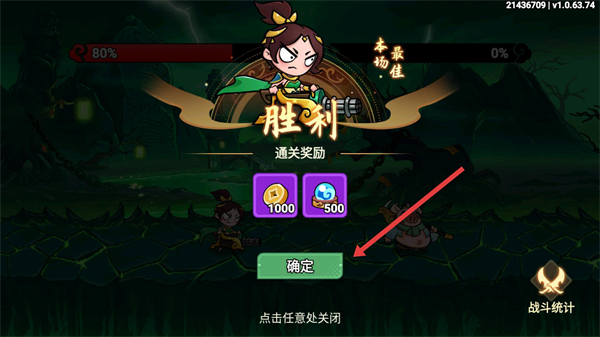 4、通关后获得奖励如金币、资源等,点击确定领取奖励,继续在地府里推进逃离任务。