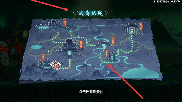 2、查看逃离路线图,了解从地府到鬼门关等区域的路径,规划逃离的行进路线,推进逃离进程。