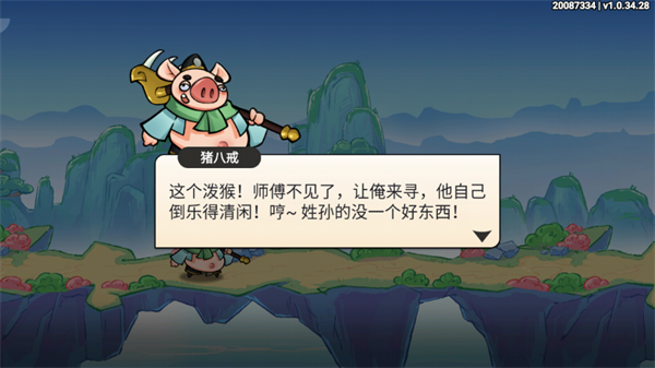 1、触发角色对话推进剧情,如跟随八戒探寻师父踪迹,解锁神话人物互动,开启仙侠冒险脉络。