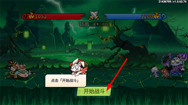 2、在战斗准备阶段,需点击开始战斗按钮,进入如关卡12等具体战斗场景,与各类妖怪正式展开对战。