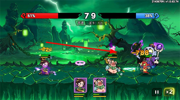 2、参与横版战斗,操控角色释放技能对抗敌人,依据血量、关卡进度博弈,争取战斗胜利。