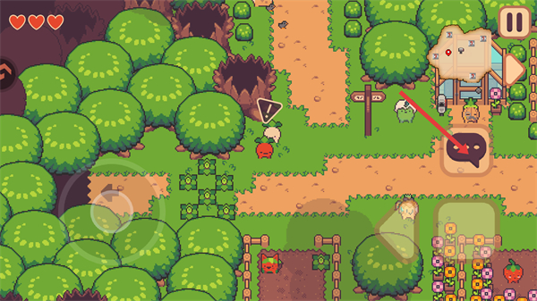 1、像素美术呈现细腻角色动画,大头菜奔跑时叶片随风摆动,情绪变化通过表情符号显示,环境设计充满植物元素。