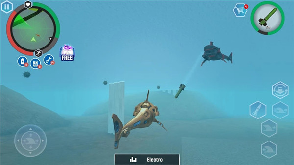 6、视觉表现采用金属质感渲染,机器人关节活动产生液压音效,鲨鱼形态游动呈现流体动力学,破坏特效区分材质反馈。