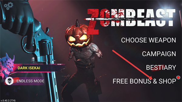 3、点击CONTINUE按钮,进入游戏的僵尸射击场景,开始执行任务,获得奖励。